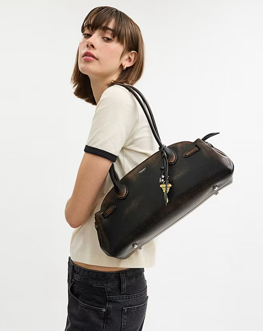 Coach Carryall34新款復古皮革保齡球包,折扣後$14174含稅免運,Carryall新款直接進化刷色,還多了Coach掛飾+鑰匙,真的太會設計了!台灣訂價$20800,相當於打68折好價!我自己有收同款紅棕色,細節很美很值得收~