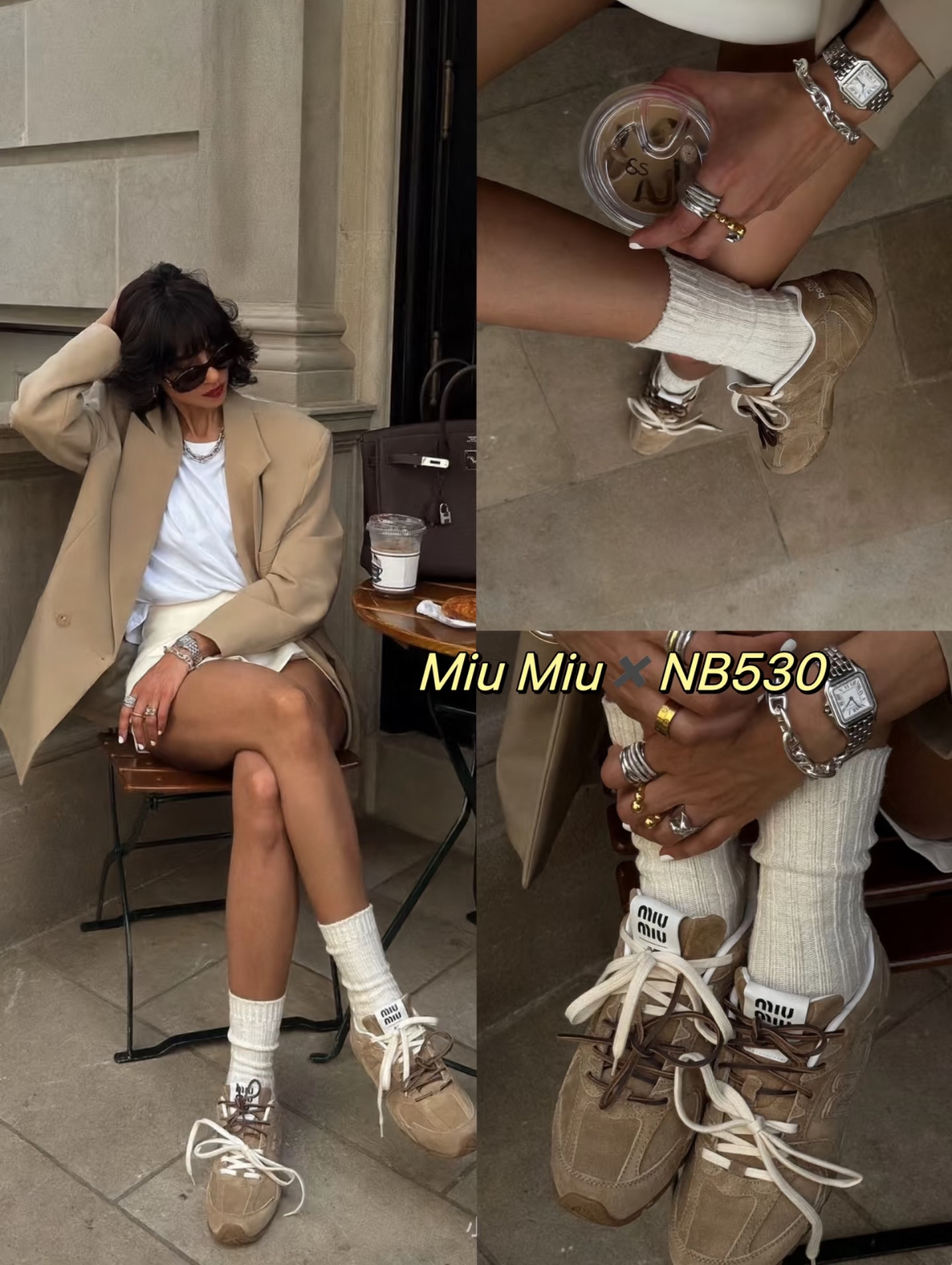 快收~Miu Miu和NB聯名的NB530SL麂皮拼網眼運動鞋,用碼【DOUBLE12】折上折後台幣$29521含稅免運,台灣訂價四萬二,相當於打7折好價!這雙超級熱門,而且這個顏色缺碼缺很兇,現在黃金尺碼補貨請把握~