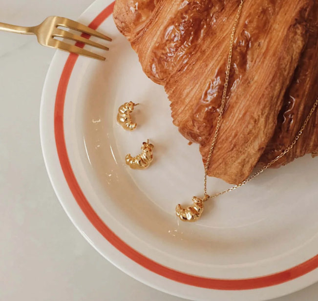 SUIHE牛角麵包項鍊一炮而紅之後,品牌過了一陣子出了這條迷你牛角麵包項鍊,真的可愛死,我自己也有收,當頸鍊或是疊戴都很好看!